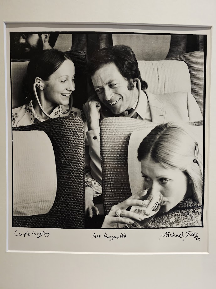 Aer lingus ad, couple on plane giggling, darkroom test print by Michael Joseph