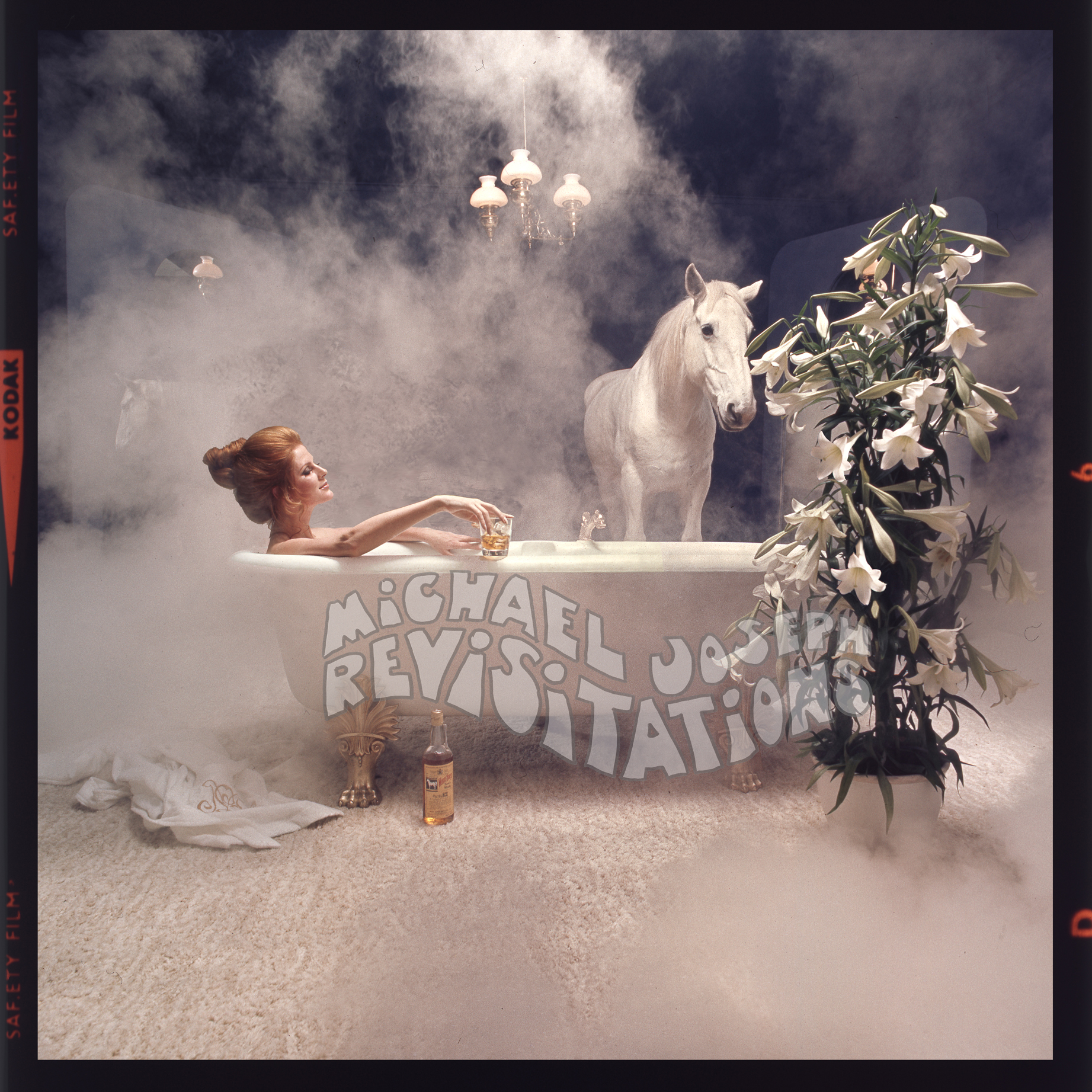 Anecdote tirée d’un article sur mon père dans Pic Magazine (juin 1990) : Dans la publicité pour le whisky White Horse, le mannequin roux choisi pour le bain était Paulene Stone, qui s’est montrée plutôt coopérative, étant donné que le cheval lui respirait dans le cou. Et même si nous avions un seau à portée de main, le cheval a réussi à faire un terrible dégât sur le tapis, ce qui était frustrant car nous pouvions le voir se refléter dans le miroir ! Nous avons dû payer un nouveau tapis. C’est l’un des problèmes de la publicité : on se retrouve avec toutes sortes de factures ridicules. Le bon côté des choses, c’est que nous avons fait installer une machine à fumée pour masquer le désordre, et à mon avis, c’est devenu la véritable magie de la photo. La brume éthérée a non seulement masqué les imperfections, mais a également ajouté une touche de mystère et de charme, transformant le moment en quelque chose d’inoubliable.
