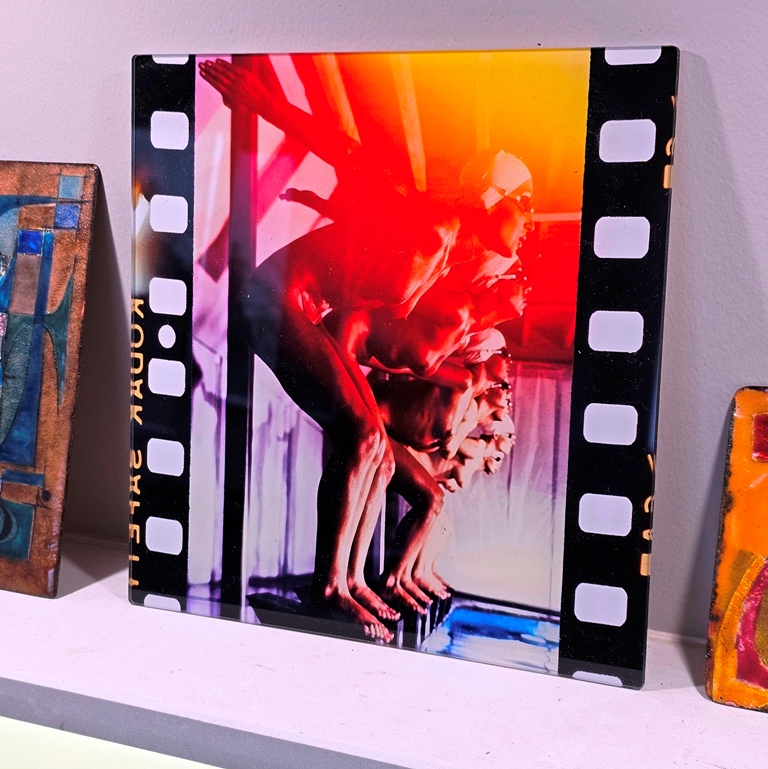 Multicolour ready to dive – pool ladies, photo on acrylic, square format