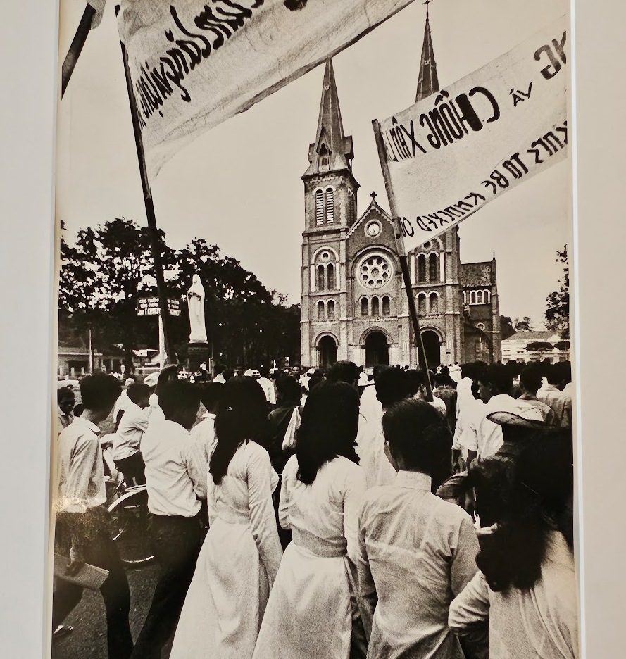 Girls protesting in vietnam with banners during war authentic darkroom print by Michael Joseph