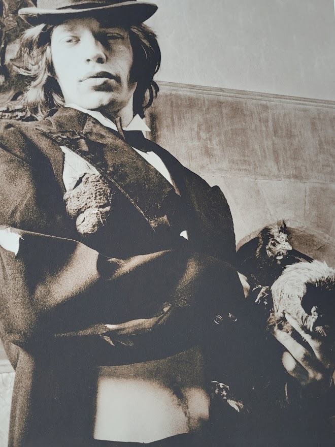 Mick and Chick, Portrait de Mick Jagger avec la poule de Sarum Chase, lors du shooting Beggars’ Banquet le 7 Juin 1968