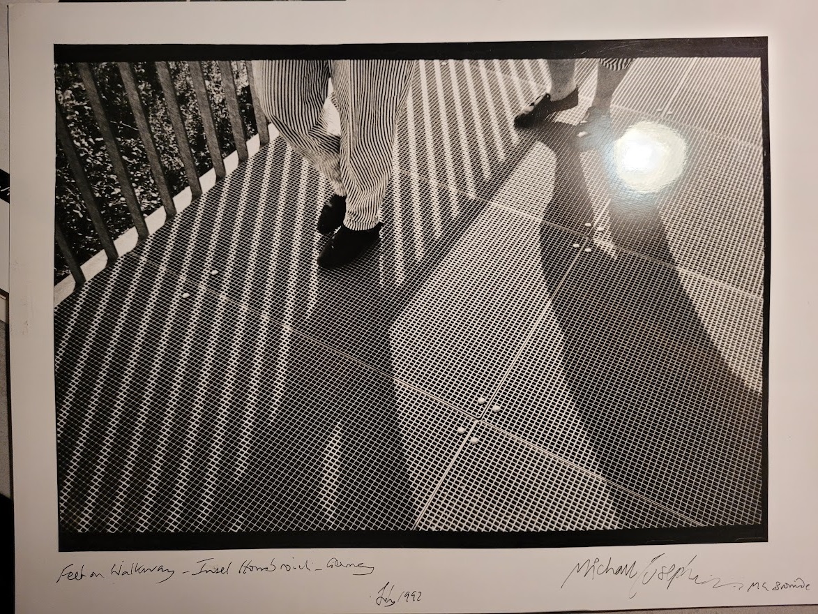 Picture designed & created by the photographer – artistic darkroom MG bromide edition print of feet deck and railings. Signed by the photographer.