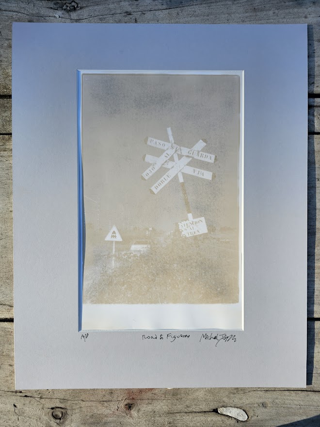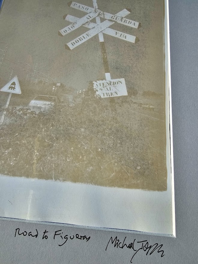 Railway siding artistic train signpost on the way to Figueras near Cadaques atention al tren artistic edition by Michael Joseph