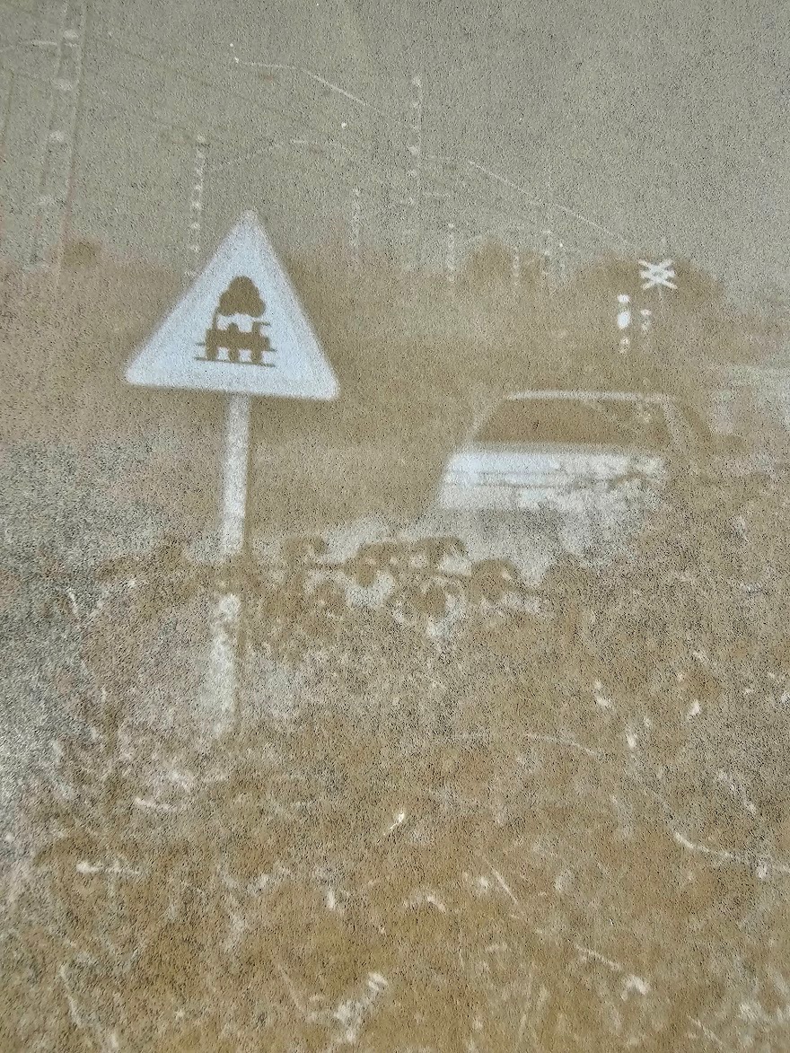 Soyez le premier à laisser votre avis sur “Railway siding artistic train signpost on the way to Figueras near Cadaques atention al tren artistic edition by Michael Joseph”