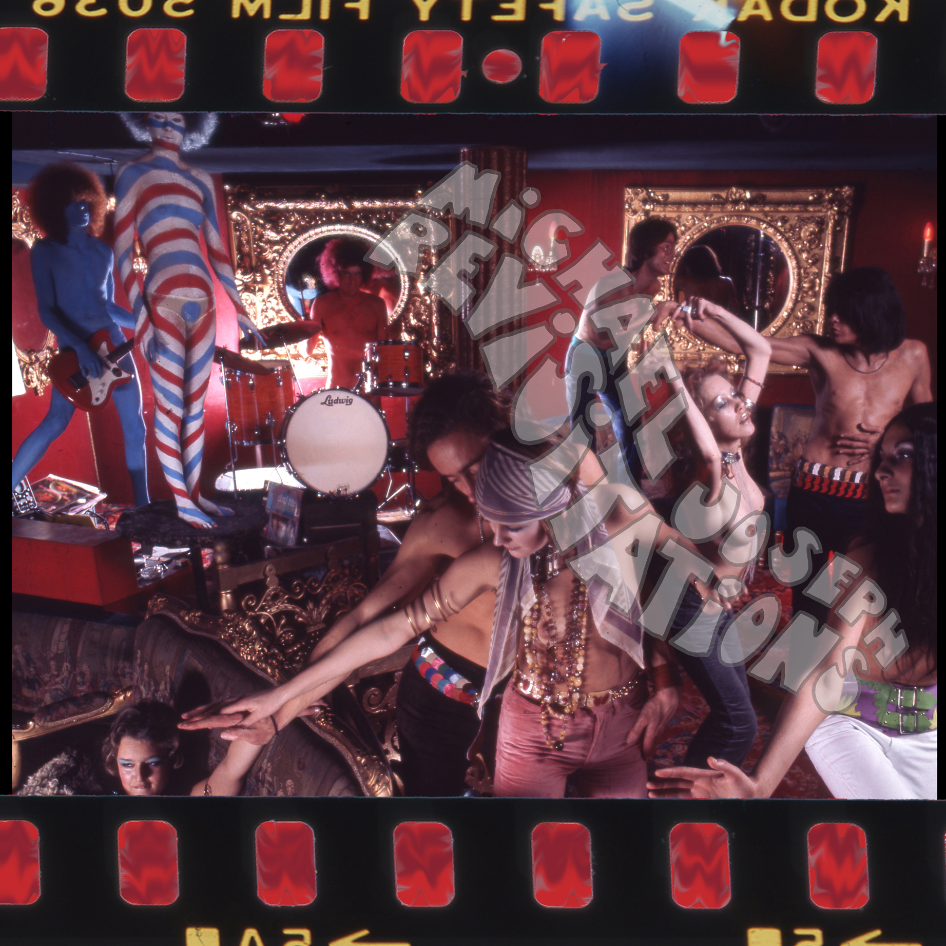 Tirée de la vie nocturne londonienne animée des années 1970, cette carte postale publicitaire au format carré capture un moment spontané et plein d’entrain lors de la soirée Levi’s « Only in Jeans », issu de la collection au titre insolent « Nude but Not Rude ». Commandée par l’agence de promotion londonienne.