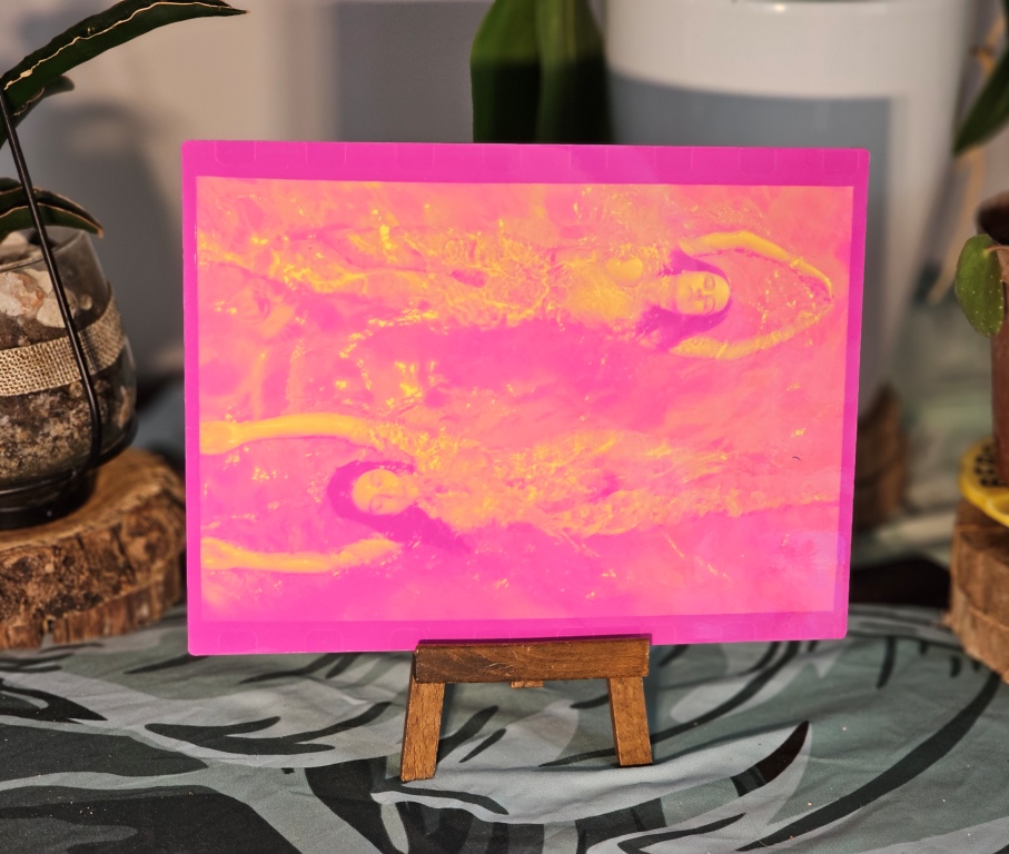 Swimming opposite, pink edition – from the Pool Ladies series for the Playboy Interview photo-shoot on aluminium